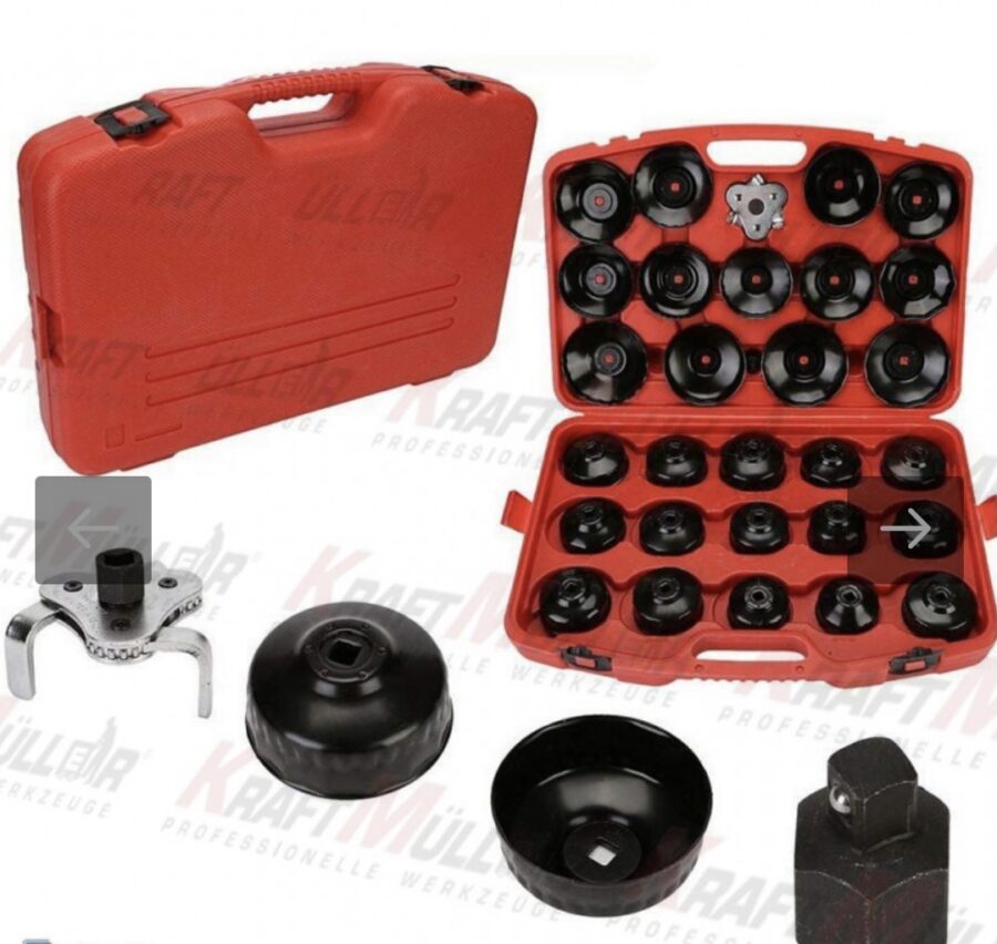 Coffret de 30 cloches ou coiffes pour filtres à huile pour tous les type de voiture.