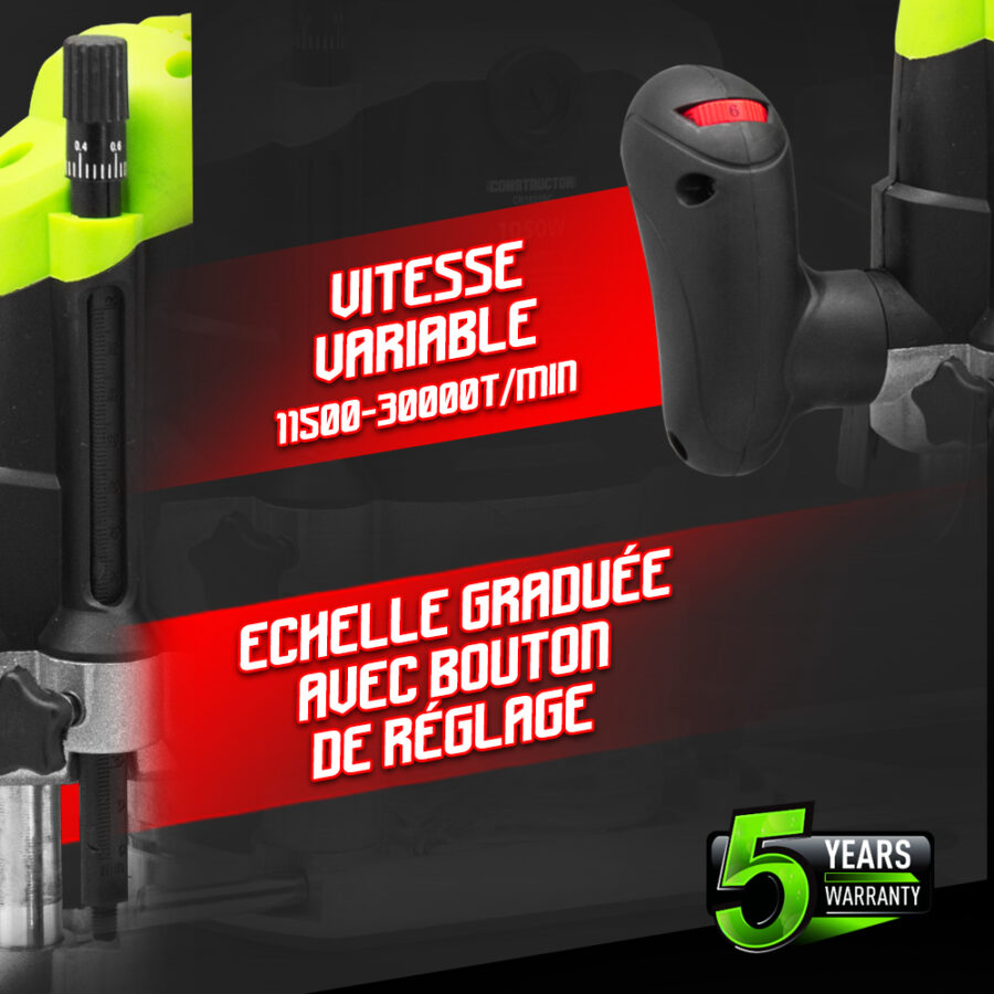 – Accessoires : Butée de profondeur, guide parallèle et adaptateur pour l’aspiration de la poussière