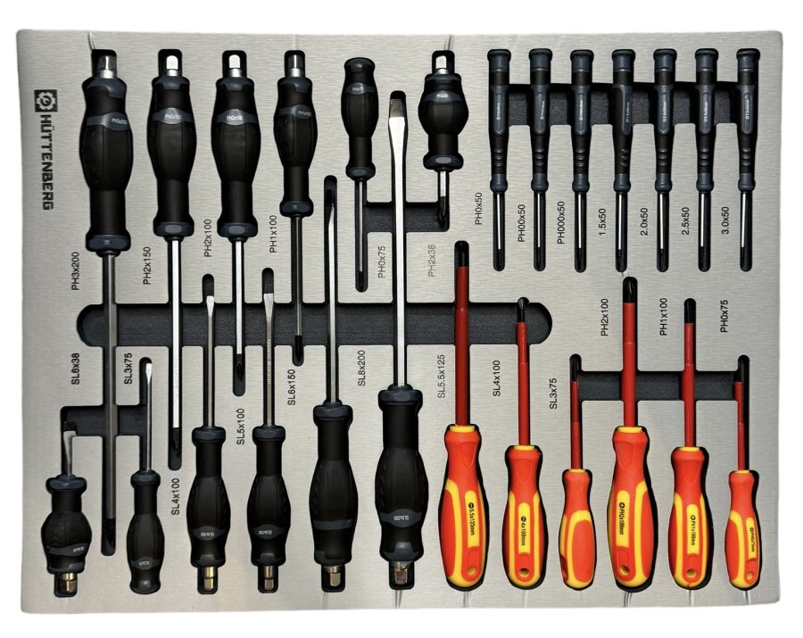 -6 tiroirs entièrement équipés d’outils en chrome vanadium.